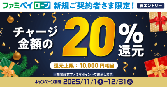 ファミペイローン新規キャンペーンでチャージ金額の20%還元